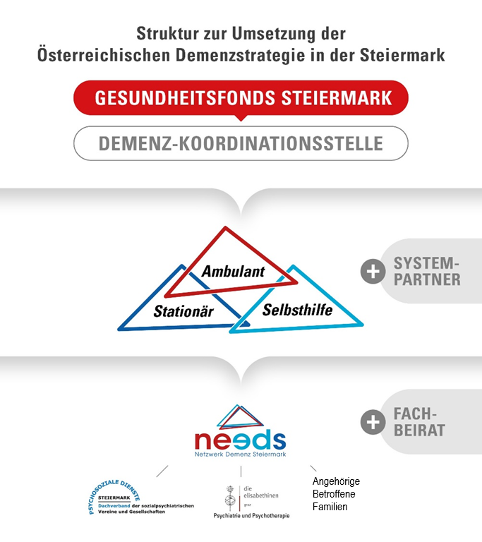 Diese hat mit dem Netzwerk Demenz Steiermark (Needs) eine Task-Force gebildet, welche die Bedürfnisse und Perspektiven von Familien sowie Betroffenen mit dem ambulanten und stationären Bereich zusammenführt.